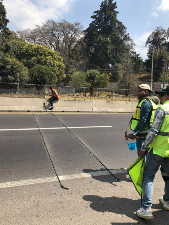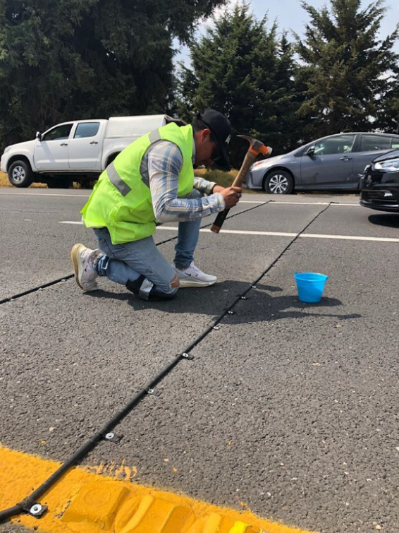Colocación de mangueras neumáticas para el conteo de aforos automáticos