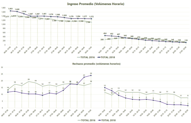 Ingresos y Rechazos promedios comparativa 2016 vs 2018