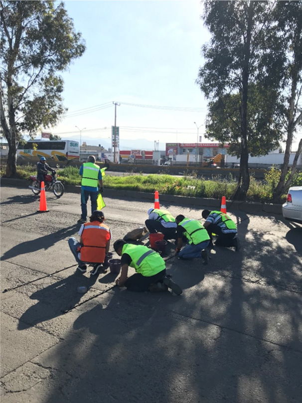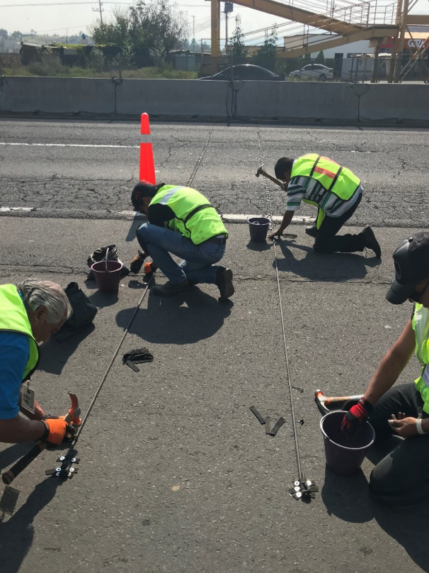 Colocación de mangueras neumáticas para el conteo de aforos automáticos