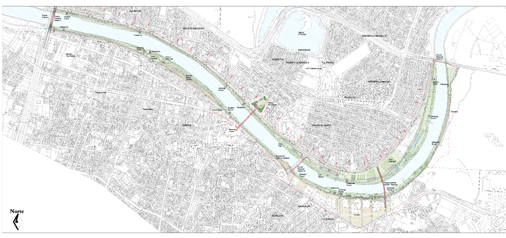 Plano de conjunto del proyecto de intervención urbana integral del río Grijalva en la ciudad de Villahermosa.