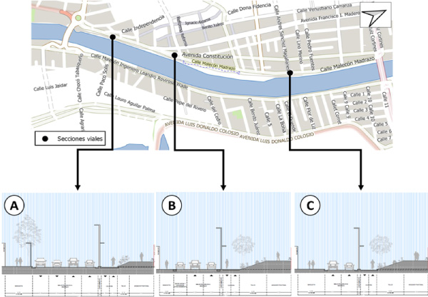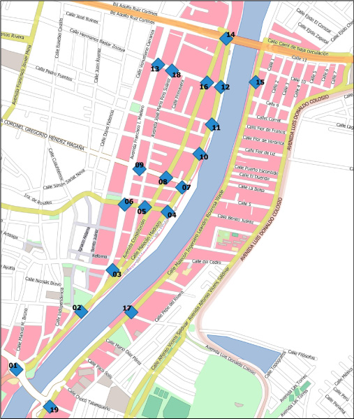Ubicación de nodos de evaluación y niveles de servicio delproyecto de intervención urbana integral del río Grijalva en la ciudad de Villahermosa